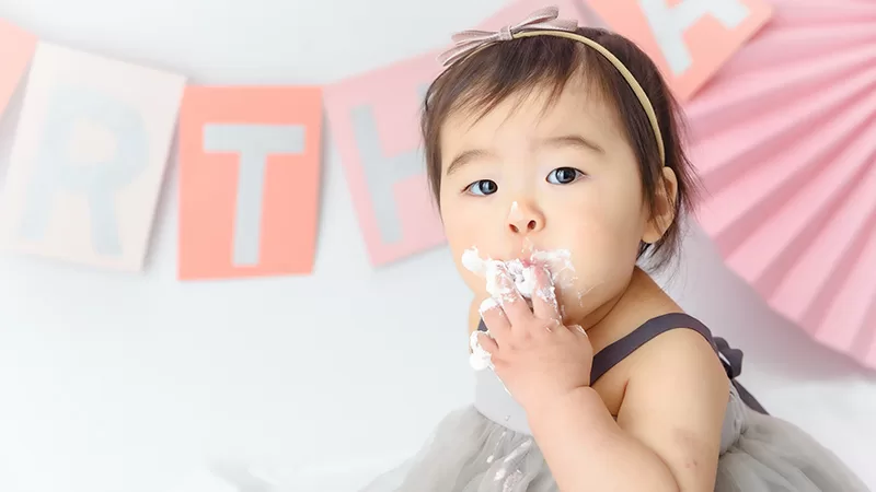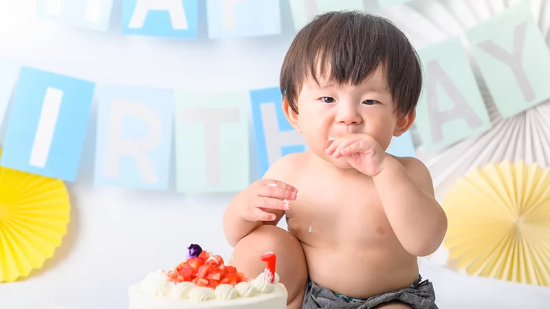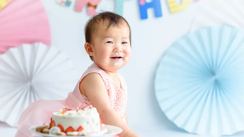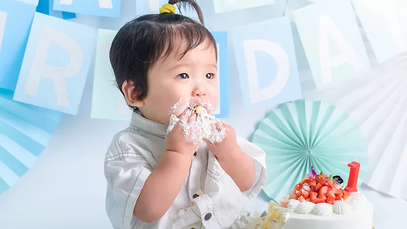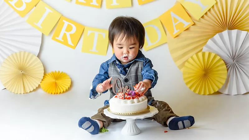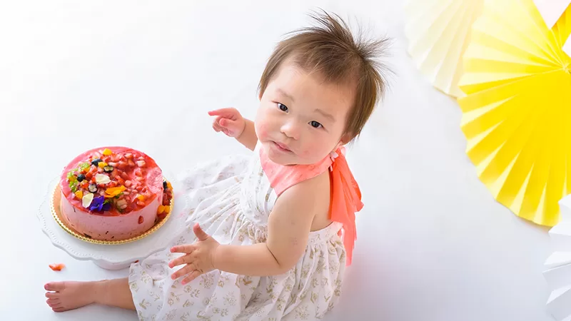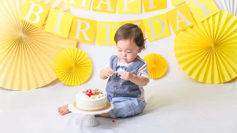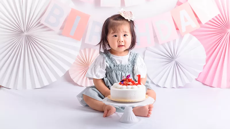 大人気のスマッシュケーキ撮影はケーキのご用意もすべておまかせください。バースデーフォトとしてもオススメです。